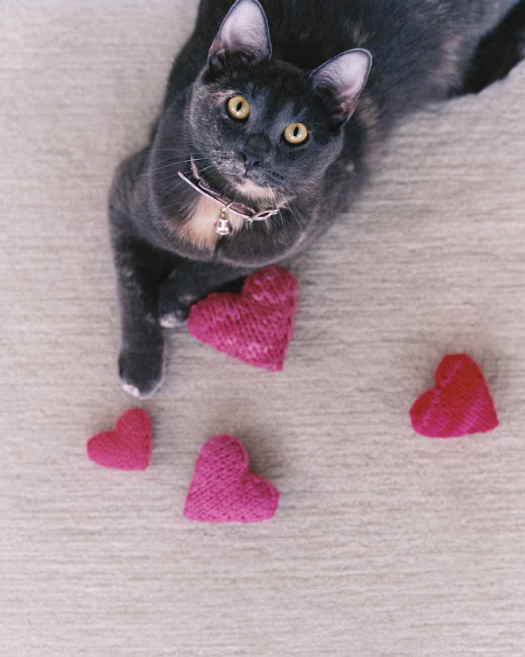 38. Knitted Catnip Delight: This toy is a great way to use leftover yarn because it requires less than an ounce. You’ll also need a handful of wool stuffing, a large needle, a jingle bell, and a couple of spoonfuls of dried catnip. (via Martha Stewart)