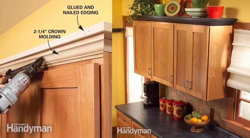 10. Add Shelves Above Kitchen Cabinets: Create an attractive display shelf for the empty space above your kitchen cabinets. This project requires only basic carpentry skills, and you can build it in a day. (via Family Handyman)