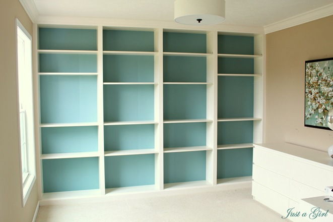 24. Add a built-in Bookcases: Use Ikea Billy bookcases to make a custom built-in look (via Just a Girl Blog)