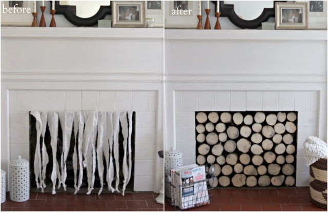 25. Faux Log Stack: A DIY faux log stack easily hides an unsightly gas fireplace adding a rustic and modern charm. (via Decor Fix)