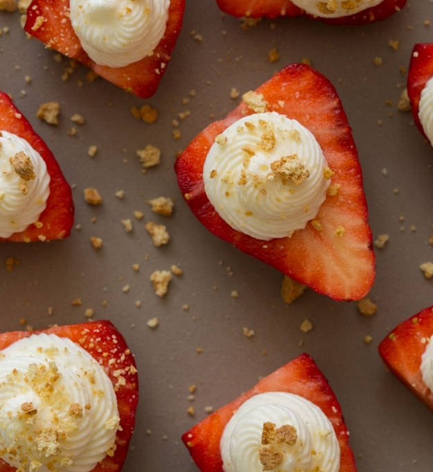 12. Deviled Heart: A quick and easy dessert recipe made with strawberries, cheesecake filling, and crumbled graham crackers. We call this Deviled Hearts. (via Spoon Fork Bacon)