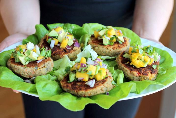 5 Jalapeño Chickpea Lentil Burgers with Sweet Mango Avocado Pico