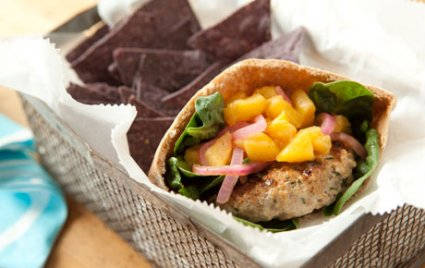 25. Grilled Pork Burger with Savory Pickled Peaches: Spoon leftover pickled peaches onto turkey or ham sandwiches or mix with cream cheese for a sweet and savory dip for crackers. Serve these pork burgers without the pitas, if you like. (via Whole Foods Market)