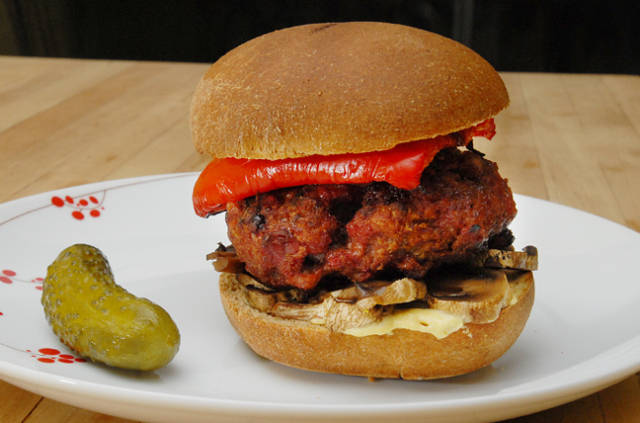 44. Venison Burgers with Roasted Red Pepper (via Rufus’ Food and Spirits Guide)