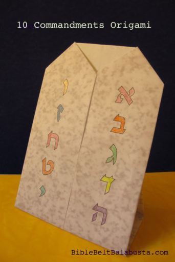 10. Ten Commandments Origami: This simple paper-folding craft is a fun way to prepare for and celebrate Shavuot, the holiday that commemorates the giving of the Ten Commandments, and by extension the whole Torah. With your help, even a young child can fold and decorate the Tablets. The finished product can stand up on a table or lie flat (via Bible Belt Balabusta)
