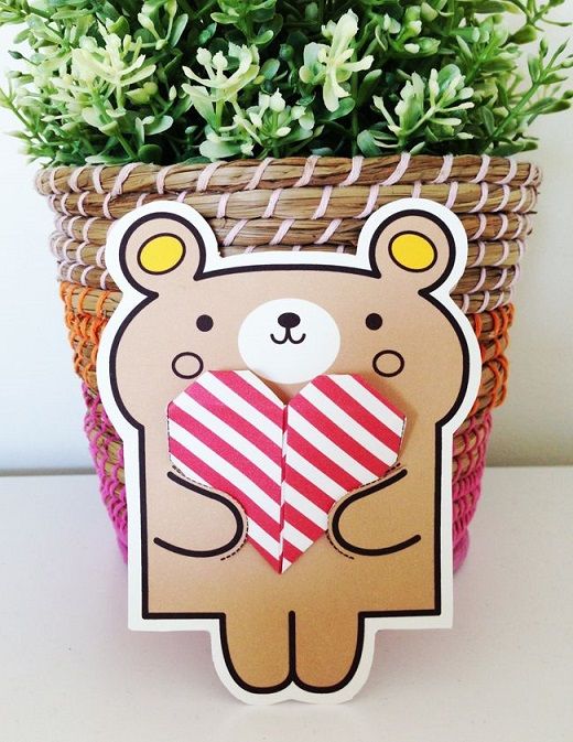 40. Printable Animal Card: Valentine’s Day Printable Animal Card with origami hearts. Artwork Copyright by Wita Puspita for Design Is Yay ! (via Design is Yay!)