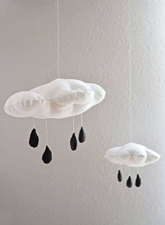 50. Cloud and Raindrop Mobile: Clouds, raindrops & umbrella prints seem to be a trend this year and I’m loving them on leggings, t-shirts and as wall paper. Clouds and rain make me very happy specially because we are in Southern Cali where rain doesn’t come by often. So, I created this simple nursery mobile for our little (via Little Inspiration)
