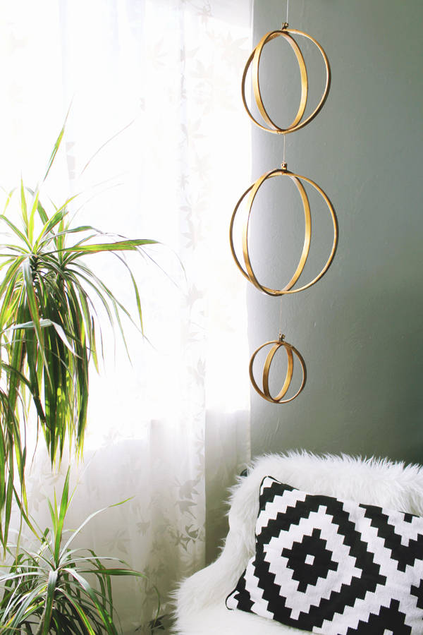 44. Gold Geometric Mobile: Geometric shapes make my heart race. A gold geometric mobile sounded like the perfect living room accessory. (via Observant Nomad)