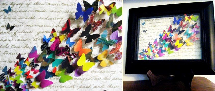 5. Butterfly Collage: Recycled Magazine Butterfly Collage – PAPER CRAFTS, SCRAPBOOKING & ATCs (ARTIST TRADING CARDS) – I made this a few days ago due to my over abundance of magazine laying around. They are butterflies cut using Martha Stewart paper bunches then (via Craftster)