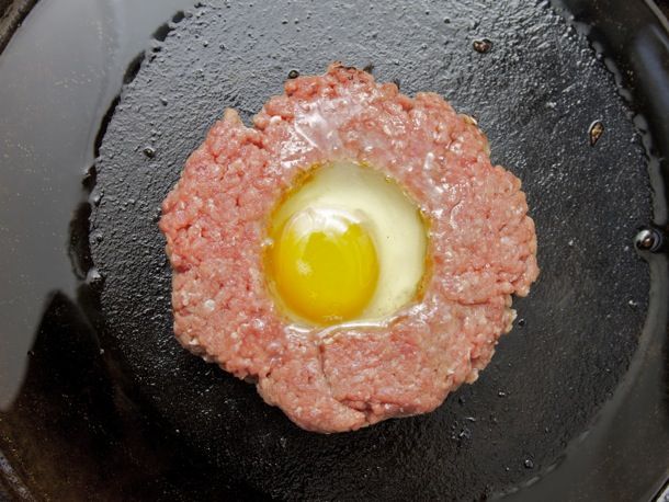 48. Burger with a Fried Egg Center: I’ve always thought that there aren’t enough egg-cooked-in-hole dishes. With the Grilled Cheese Eggsplosion that’s a grilled cheese sandwich made from two slices of bread with holes cut out and an egg fried in the center of each one I doubled my personal repertoire. Today, we add yet another to the list, and it’s a pretty awesome one. (via Serious Eats)