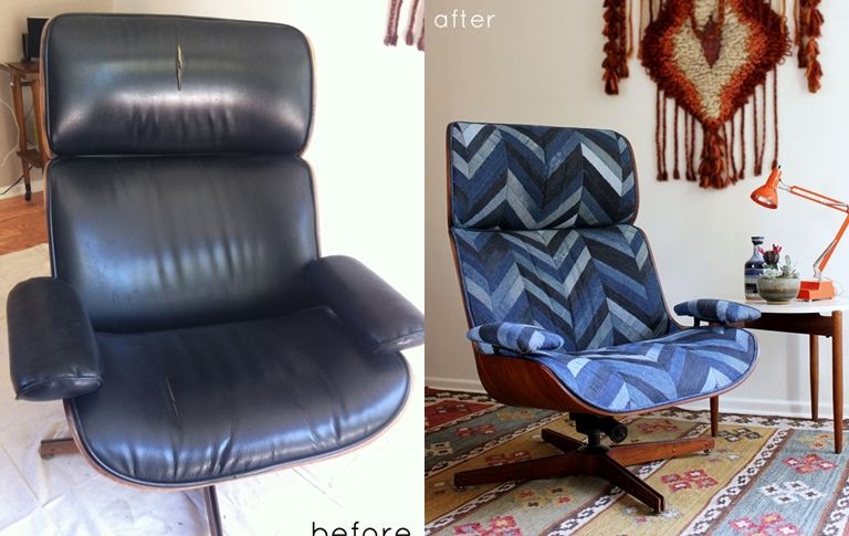 29. Denim Chevron Patchwork Upholstery: Your home for all things Design. Home Tours, DIY Project, City Guides, Shopping Guides, Before & Afters and much more (via Design Sponge)