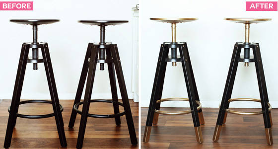 17. Bar Stools Makeover: We got these DALFRED bar stools from IKEA as sort of a temporary thing. At $40 a pop they were a pretty good option and close enough to what we were looking for at the time. Eventually I got bored with them and they didn’t go with the rest of our room. I didn’t feel (via Melodrama)
