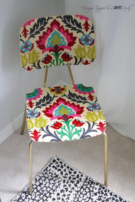 49. Chair with Fabric and Mod Podge: Come learn how to “upholster” a chair with fabric and mod podge for a BOLD look on a small budget! (via Designer Trapped in a Lawyer’s Body)