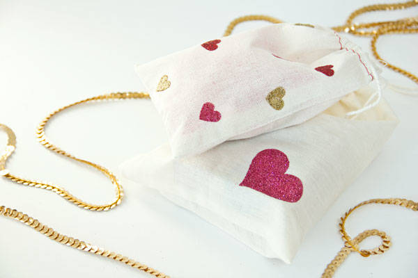 23. Glitter Heart Bags: DIY Glitter Heart Drawstring Bags for Valentine’s Day and Party Favors (via Studio DIY)