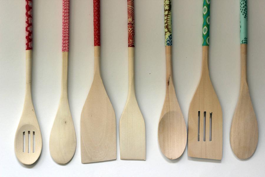 38. Fabric Covered Wooden Spoons: Today we are kicking off the Handmade Gift Series with a fabric covered wooden spoon DIY project. Each week through the end of December, join us for wonderful (via Alice and Lois)
