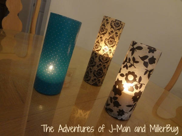 37. Decoupage Tissue Paper Candle Holders: With the end of the school year right around the corner, its time to start thinking of crafts that make perfect gifts. After all, there will be teacher gifts. And friend gifts. And of course the gifts that you take when you visit family on vacation. So this week Ive been trying to come up (via The Adventures of J-Man and MillerBug)