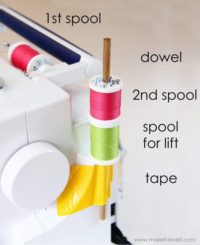 32. Serger Thread Hack: I recently participated in a charity sewing event, and I brought my serger to use for the day. I was so amused by my fellow sewists’ reactions to my cone bobbins pools of thread that I had to create … (via moonthirty)
