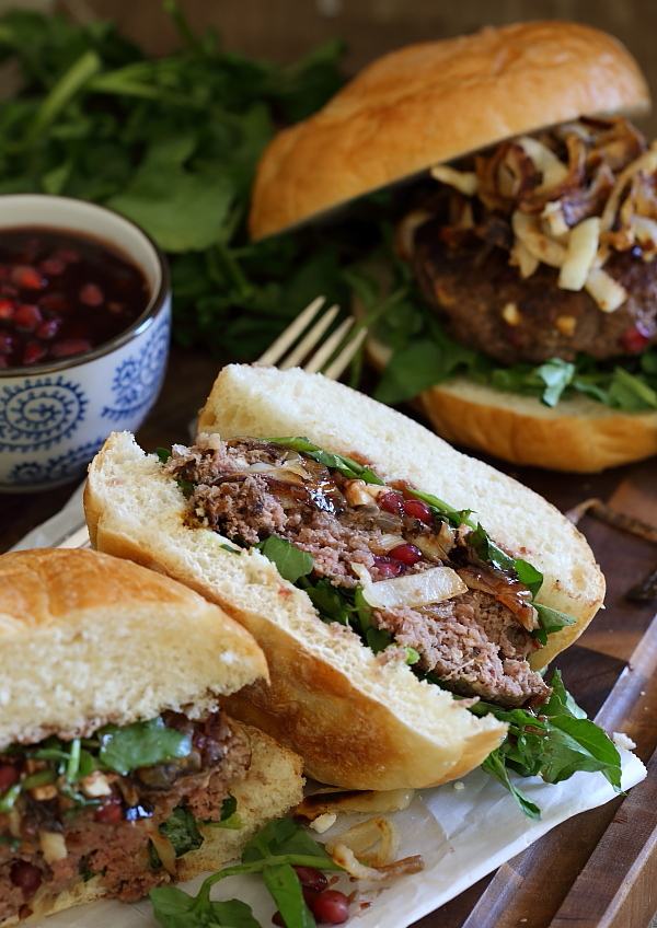 41. Pomegranate Feta Bison Burger: These bison burgers are filled with pomegranates and feta cheese and topped with caramelized onions and a quick pomegranate sauce. They make the perfect winter burger. (via Running to the Kitchen)
