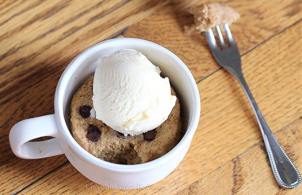 6. Single Serving Chocolate Chip Cake in a Mug: Make this gooey single-serving cake in a mug in less than 5 minutes! (via Chocolate Covered Katie)