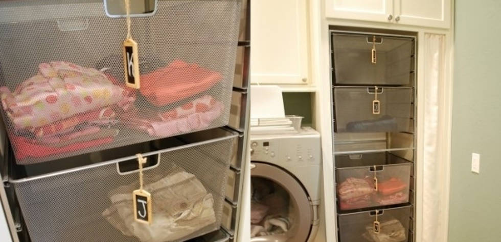 6. Use labeled baskets for family members to pick up their laundry (via Family Brings Joy)