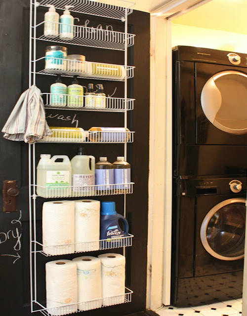 8. Hang a rack over the door to store all your cleaning and laundry supplies (via HomeSpirations)