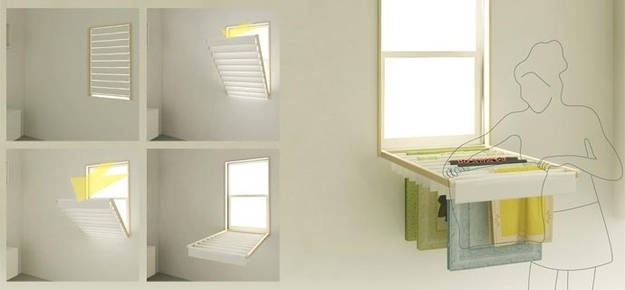 10. Drying Rack Window Blinds: Blindry is a brilliant window blind that turns into a fold-down laundry rack for drying clothes indoors.Perfect for small apartments, where floor space is often too limited to accommodate drying ra… (via shoebox dwelling)