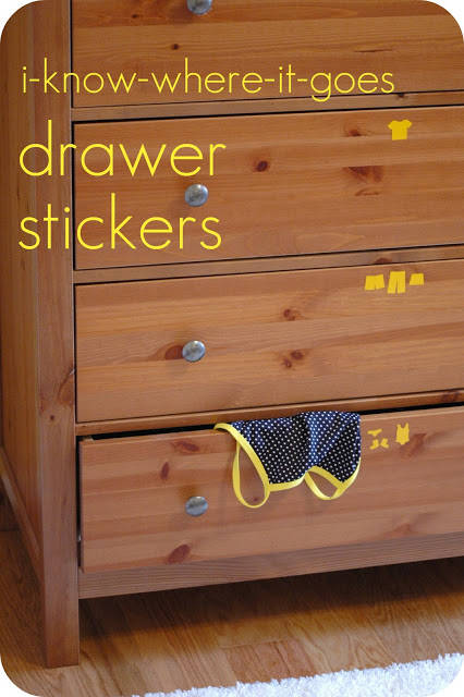 15. Drawer Stickers: Do you have a member of household who feels a bit challenged trying to figure out what goes in which drawer? Sigh. I do. I know its all part of the learning process, but I thought these might help lessen the learning curve in this area. Since someone relishes removing eeeevery single article of clothing…Read More (via crafterhours)