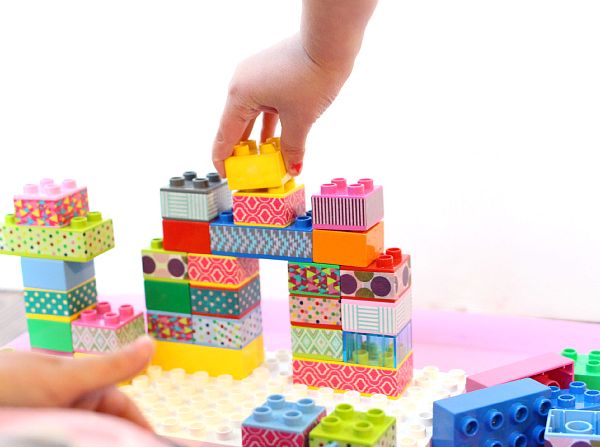 34. Washi Tape LEGO: Transform your old Lego Duplo blocks with some washi tape. These washi tape lego duplo blocks are colorful and can be used for matching patterns! (via No Time for Flash Cards)
