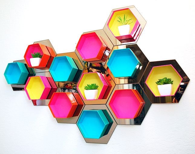 31. Hexagon Shelf: I love hexagons, whether in a honeycomb, on a quilt, or in this case as a wall shelf. Bringing the hexagon trend to your humble abode is easier (via Jennifer Perkins)