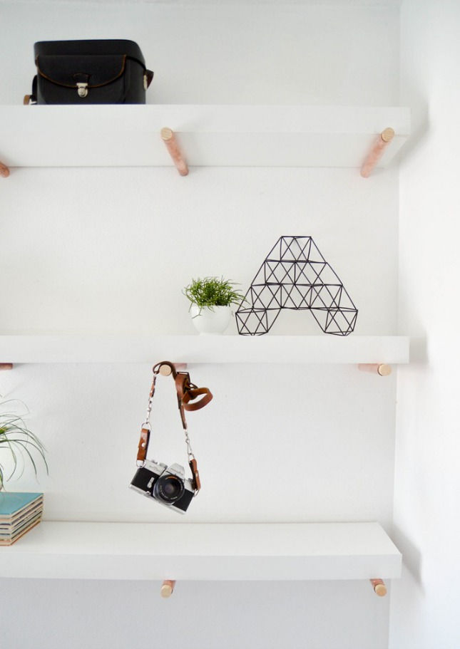33. Copper Peg Shelves: Hey guys!! So Ashy’s room is in full swing and I am loving the way that it is turning out, but most importantly she is loving the way that it is turning out, which makes me love it even more! I love when you stumble across something that just strikes a chord with you (tell [] (via Vintage Revivals)