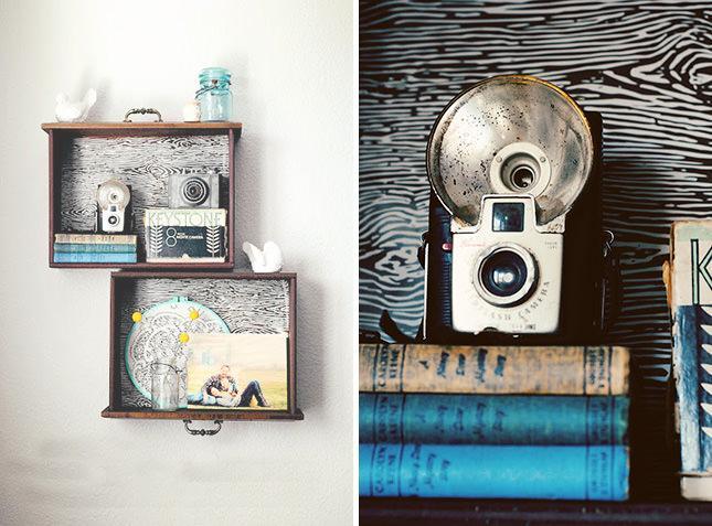 34. Unique Drawer Shelves: If you have some old dresser drawers that aren’t being used, hang them on the wall and you’ve got great looking drawer shelves. (via Remodelaholic)