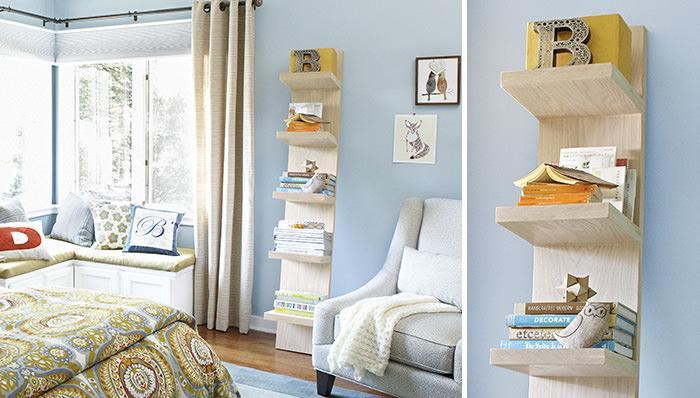43. Leaning Shelf: Use this simple-to-build hardwood display shelf to hold books, magazines, CDs and DVDs. (via Lowes)