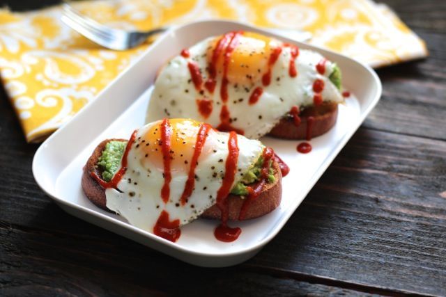 38. Avocado Toasts with Eggs & Sriracha (via Alaska from Scratch)