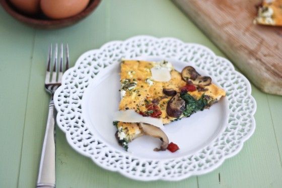 44. Sriracha and Veggie Frittata: Spicy Sriracha-inspired frittata with fresh vegetables, eggs, goat cheese and parmesan. (via Bake Your Day)