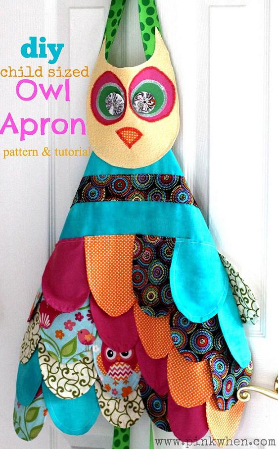 14. Owl Apron: Share >Last week I was brainstorming and thinking of ways to introduce my youngest into the kitchen. The thing is, she is already in the kitchen. Several months ago I made her this cute step stool,and since receiving it she has used it to get things she needs. In fact, its in front of my fridge (via Pink When)