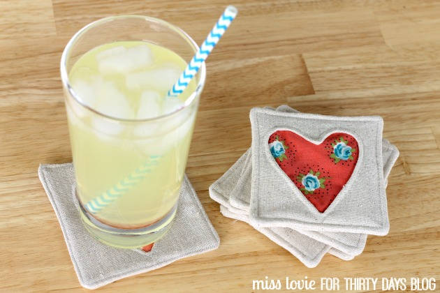 18. Fabric Heart Coasters: Simple Fabric Heart Coasters Tutorial from Allie of Miss Lovie. Too cute and simple to make! (via Thirty Handmade Days)