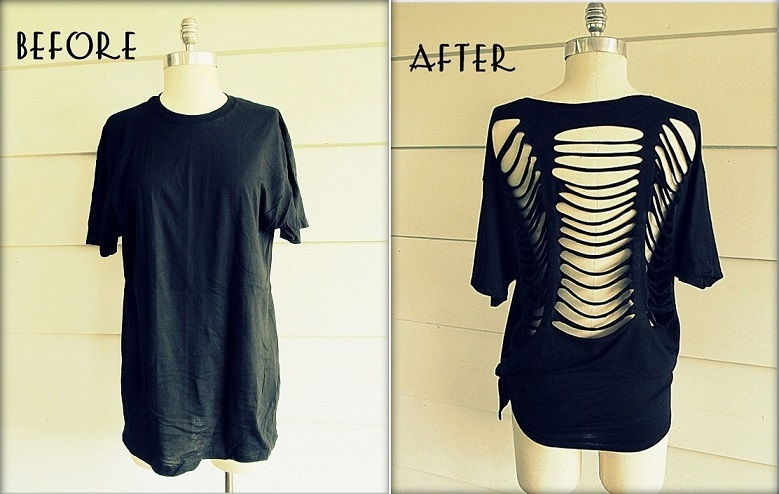 41. Easy Cut Out Shirt: I’m sure that like me, you might have a shirt in your closet that feels bored and abandoned …Let’s give it a twist to make it a statement piece for the season! With a few simple steps, you can ma… (via Plan B Anna Evers)