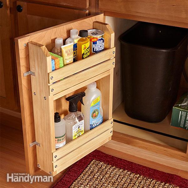 12. Cabinet Door Storage Rack: Here’s a simple project to bring order to the chaos: a door-mounted storage rack.You can modify this basic idea to organize other cabinets too. (via The Family Handyman)