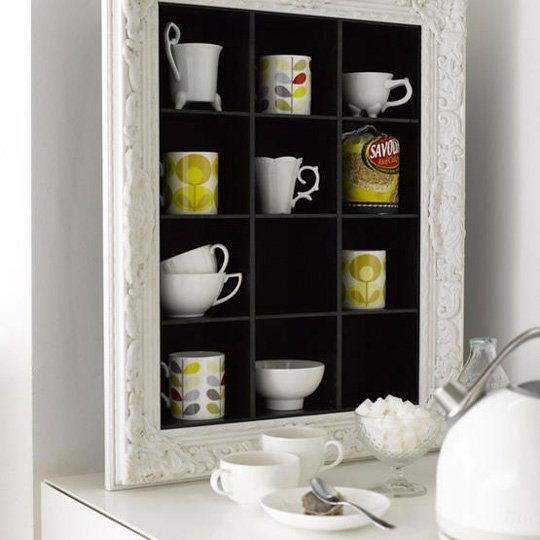 18. CD Storage Unit as Cup Storage: We love collecting mismatched china pieces–specifically tea and coffee cups. We have ours out in the open, arranged nicely on a simple white shelf in our kitchen. We love the idea, though, of “framing” our collection like we saw in Living Etc. while browsing through their galleries this morning! (via Apartment Therapy)