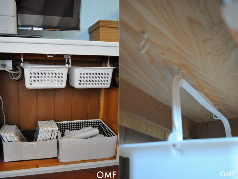 21. Hanging baskets under the cabinet (via Organizing Made Fun)