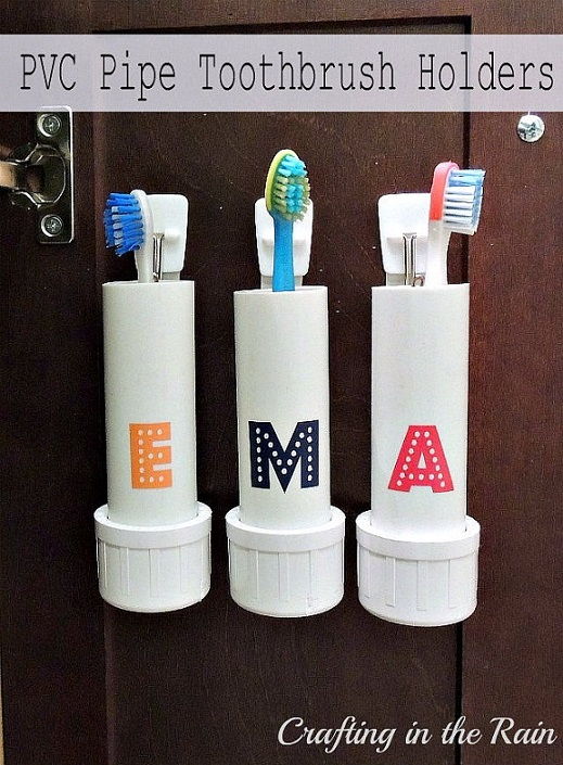 22. PVC Pipe Toothbrush Holders: Toothbrush holder DIY, keeps toothbrushes clean and organized. (via Crafting in the Rain)