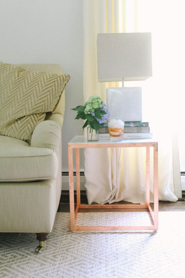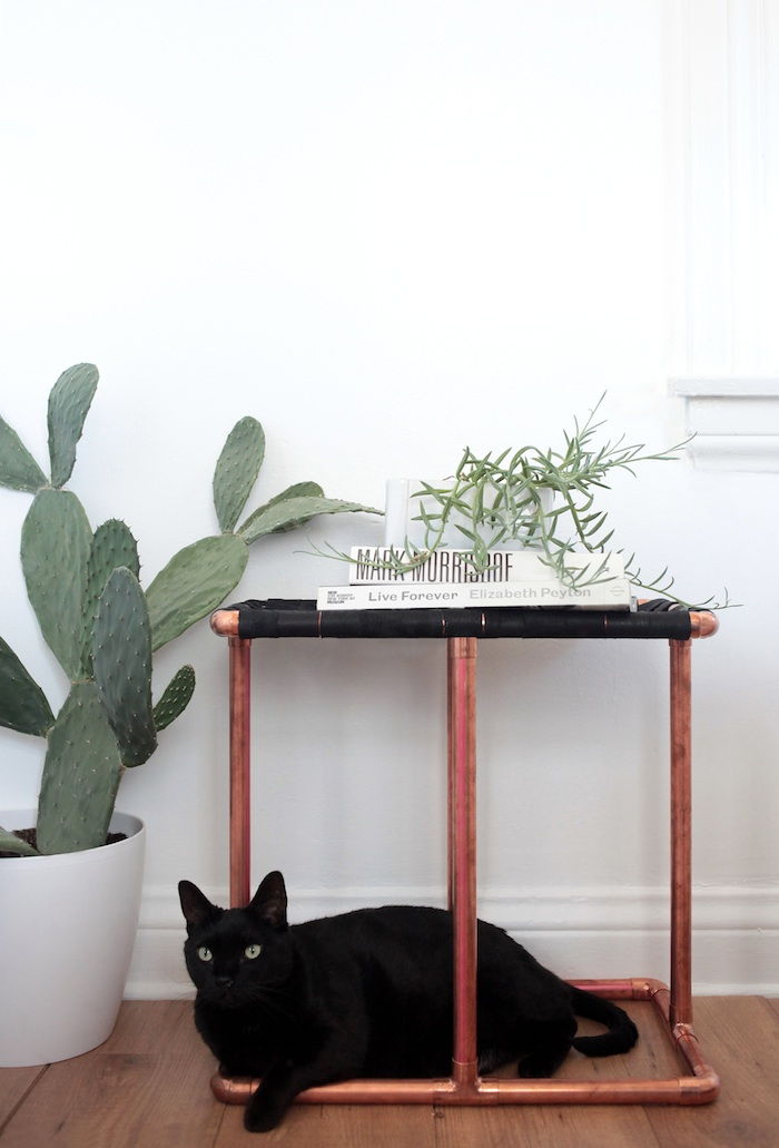 29. Copper and Leather Weave Table: Friends, friends, friends. Many of you might consider me a DIY person and while I love some DIY and Im not incompetent (I’m sorry but have you not seen my 4-h state ribbon collection?), I have some friends that are wildly better at it. So, with my collaboration, the very lovely Stephanie Todaro came up… Read More (via Emily Henderson)