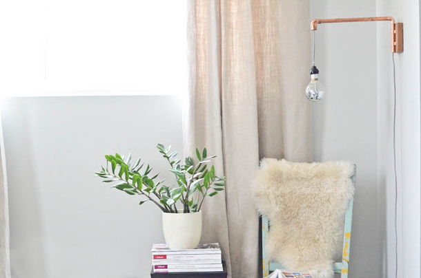 30. Copper Pipe Wall Sconce: Hi, my name is Claire, and I’m a lighting addict.If there’s one home accessory I can’t get enough of, it’s a good light fixture… but of course, this addiction often comes at the expense of my p… (via Camille Styles)