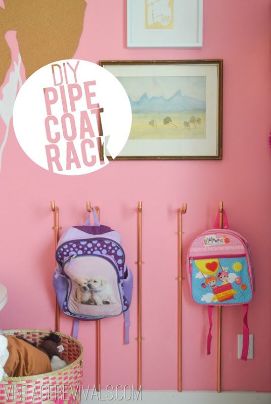 40. Copper Pipe Wall Coat Rack: I love when someone comes up with a design that is just so genius that it sticks with you for YEARS. You may remember a few years ago on Design Star Courtland created these amazing wall sconces o… (via Vintage Revivals)