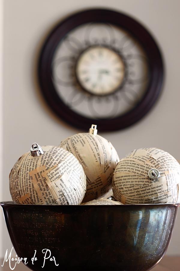 46. Book Page Christmas Ornaments: A simple, step-by-step tutorial for making vintage-looking book page Christmas ornaments. (via Maison de Pax)