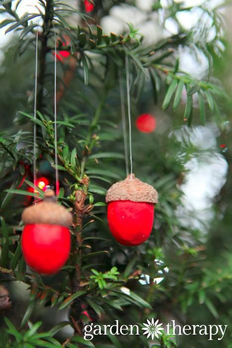 31. Clay Acorn Ornaments: These clay acorn ornaments are made simply with a modeling clay that requires no special equipment to harden (yay!) and found acorn caps. An autumn walk in the woods or even a neighborhood street is all you need to collect the caps, then follow the steps of this DIY tutorial to make your own festive holiday ornaments perfect for Thanksgiving … (via Garden Therapy)