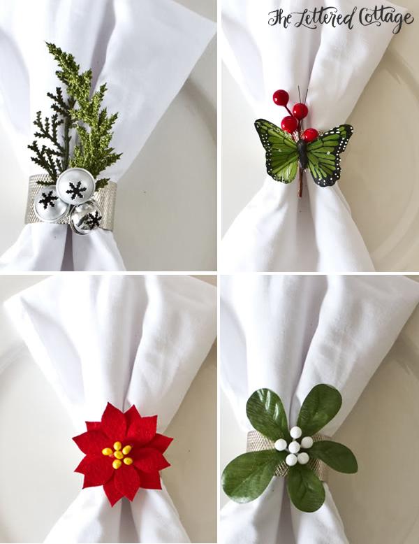 32. Festive Napkin Ring Ideas: We saw our niece and nephew sing at church tonight and it. was. wonderful! There’s something about little ones signing & singing songs about Jesus that always makes me teary. Speaking of Christmas and fellowship, if you’re hosting a family dinner and you’re looking for some inexpensive and easy ways to snazz up your dining (via The Lettered Cottage)