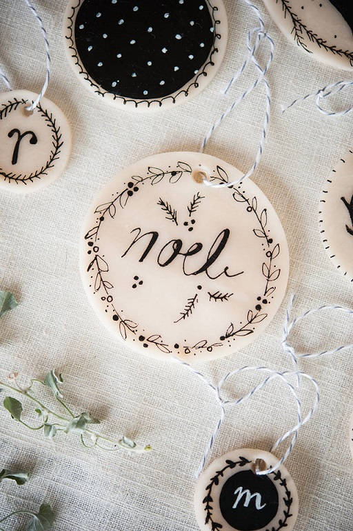 20. Clay Ornament Tags: Just in time for the holidays! Kelli Murray shows us how to make your own ornaments and gift tags using oven bake clay! Supplies: Sculpey oven bake clay, rolling pin, bakers twine, paint (I only used black), cookies cutters, paint pen and paint brushes. (Not pictured: a straw) Begin by rolling out your clay into a thin, even sheet (about 5/8″ thick). Using your cookie cutters, cut out shapes in… (via A Beautiful Mess)