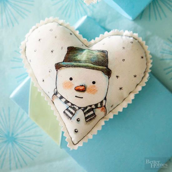 20. Heart-Shape Snowman Ornament: This heart-shape ornament will give your Christmas tree a quaint homespun feel. (via Better Homes and Gardens)