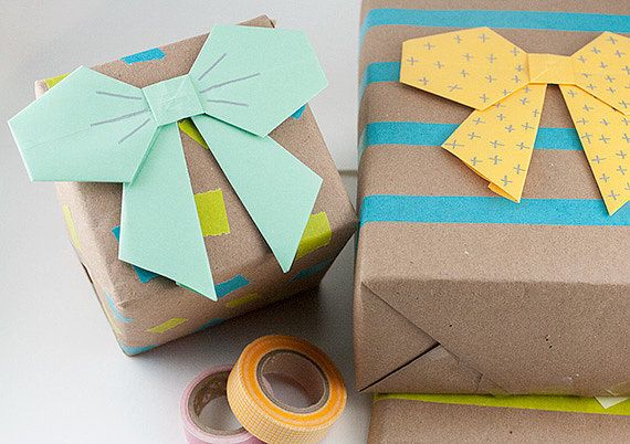 28. Origami Bows Gift Wrap: I actually got around to wrapping some presents last night hooray for a glimmer of productivity! Here’s a peek at what will be waiting under the Christmas tree this year ???? Kraft pap (via Little White Whale)